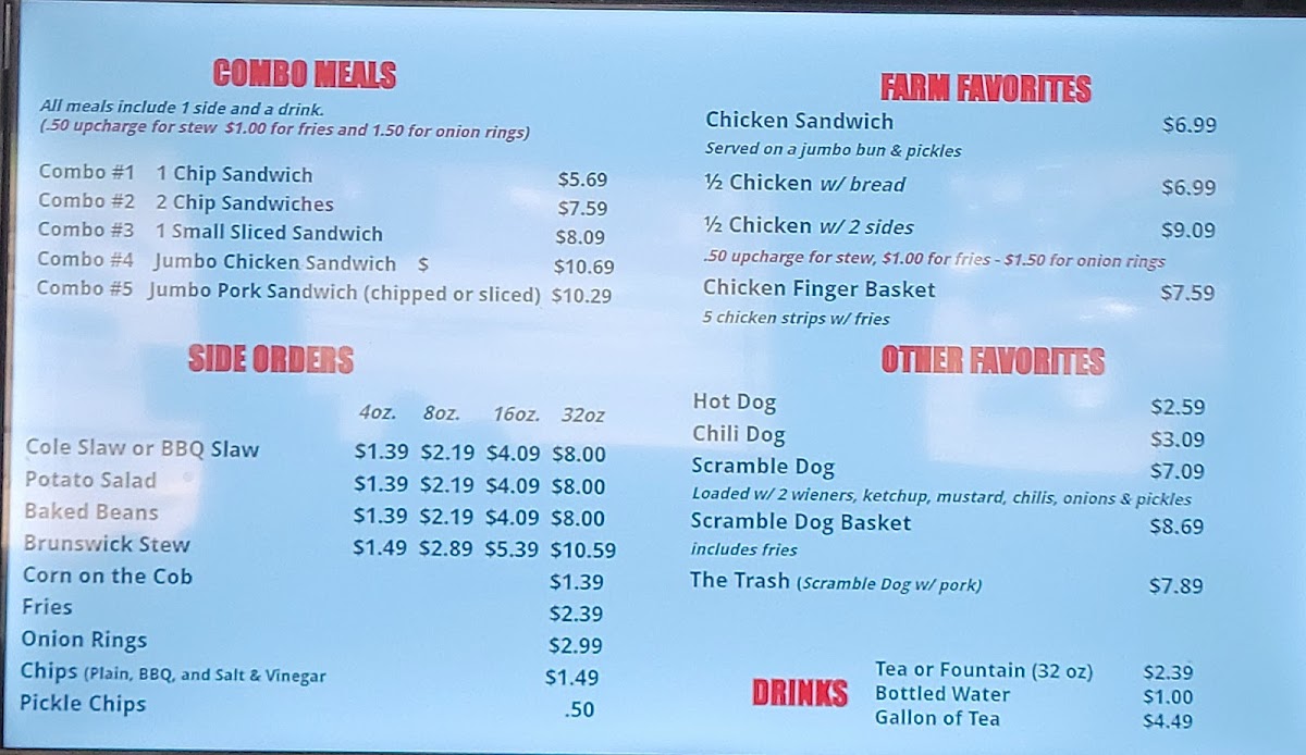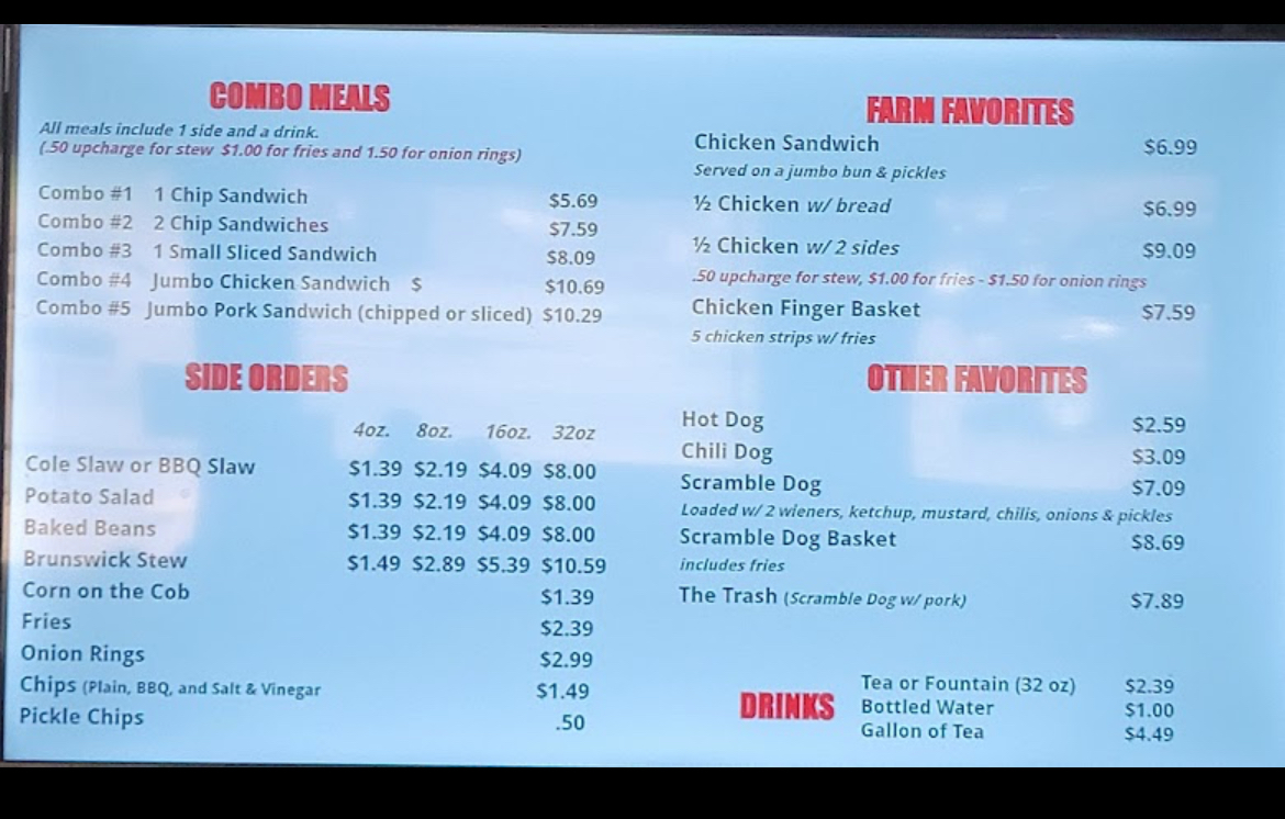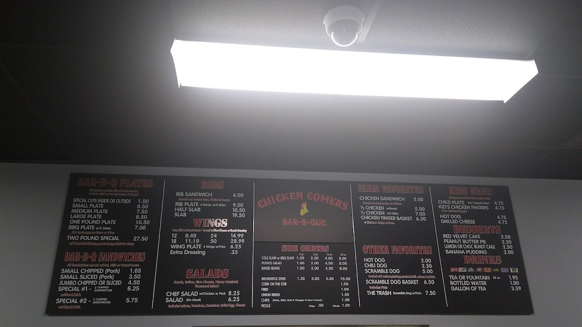 Customer favorites include the vinegar-based Brunswick stew and crispy onion rings, often praised for their standout flavors. Experience great service in a welcoming atmosphere that keeps patrons returning. Discover your next favorite BBQ spot at Chicken Comers Bar-B-Que!